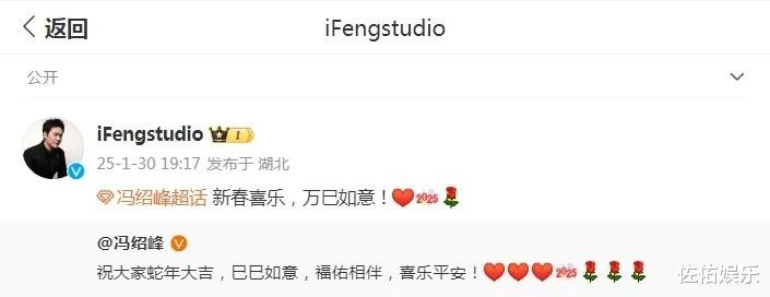 而让人意想不到的是当天的冯绍峰也同样更新了新年的第一条微博,送上了新春祝福,更是特意配上了三个爱心和玫瑰花的表情包,疑似表明了他们一家三口,这也引发了网友们的热议,疑似陪着赵丽颖回娘家了。